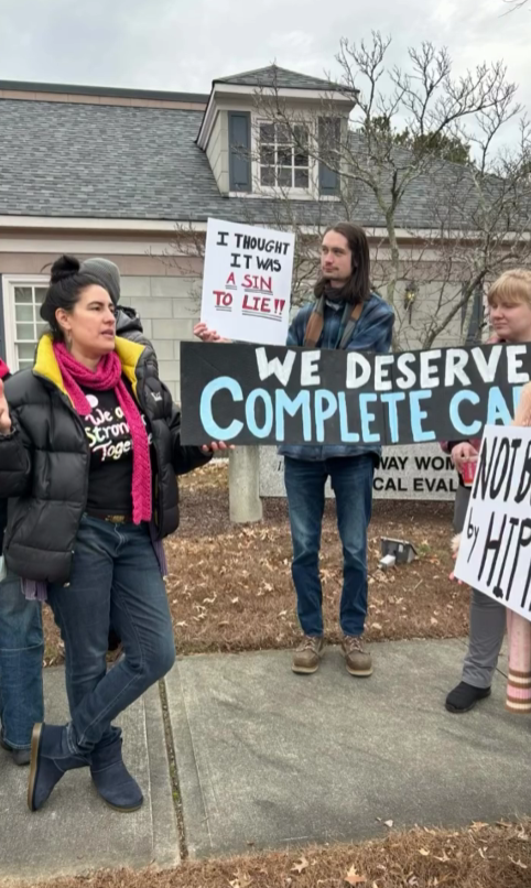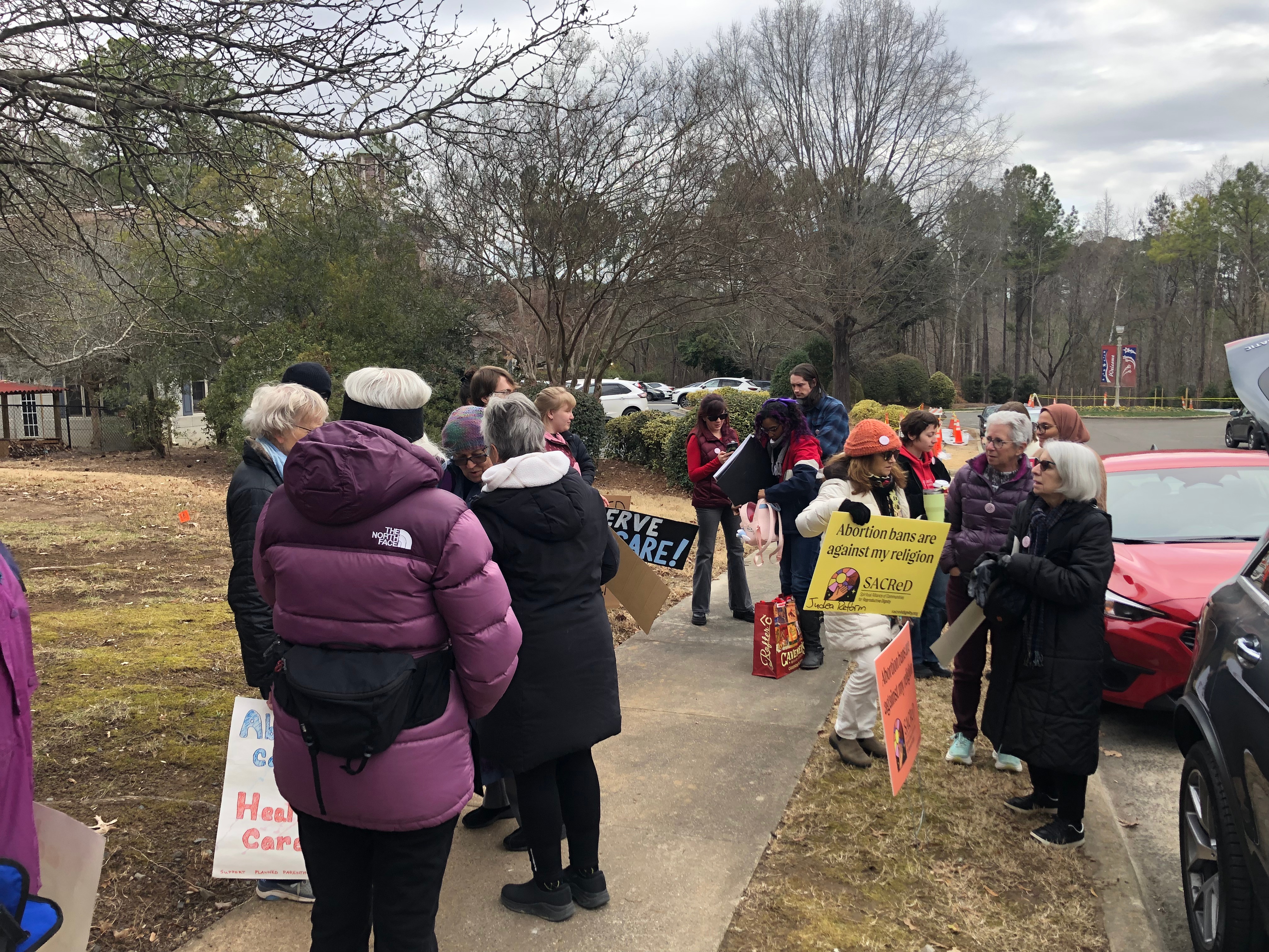 It was a motley crew of students, healthcare workers, moms, grandmas, pastors, people of faith and the non-religious, all gathered together dressed for the cold, holding signs, and sipping cocoa. IVRF members joined with friends from Triangle DSA and other community members to get out there and say something!